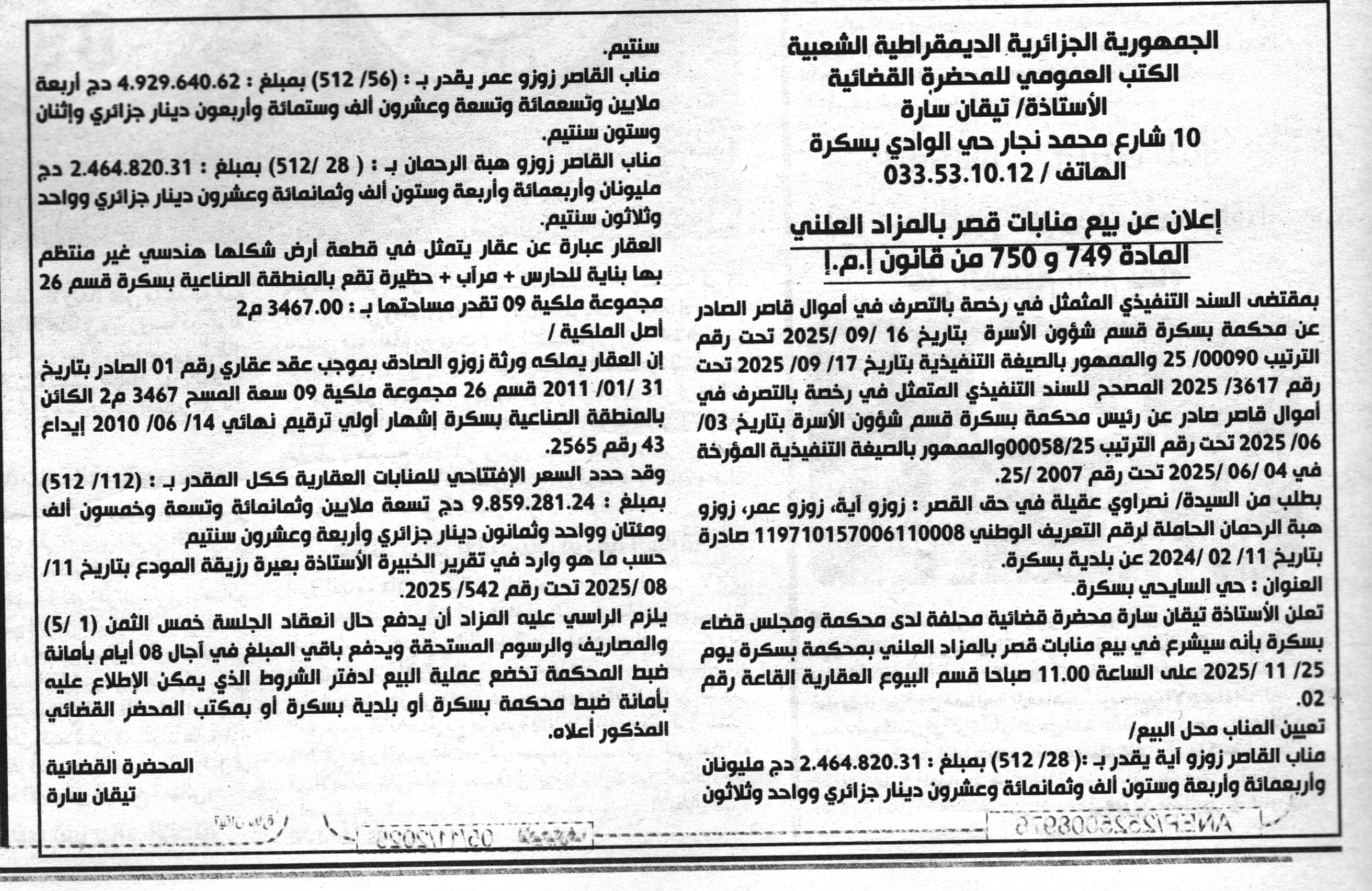 Il sera procédé à la vente au plus offrant et dernier enchérisseur le :