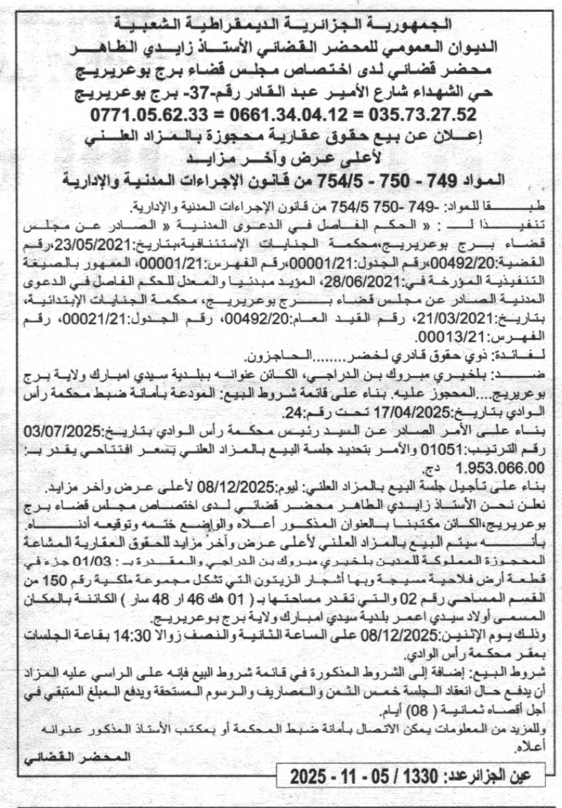 Il sera procédé à la vente au plus offrant et dernier enchérisseur le :