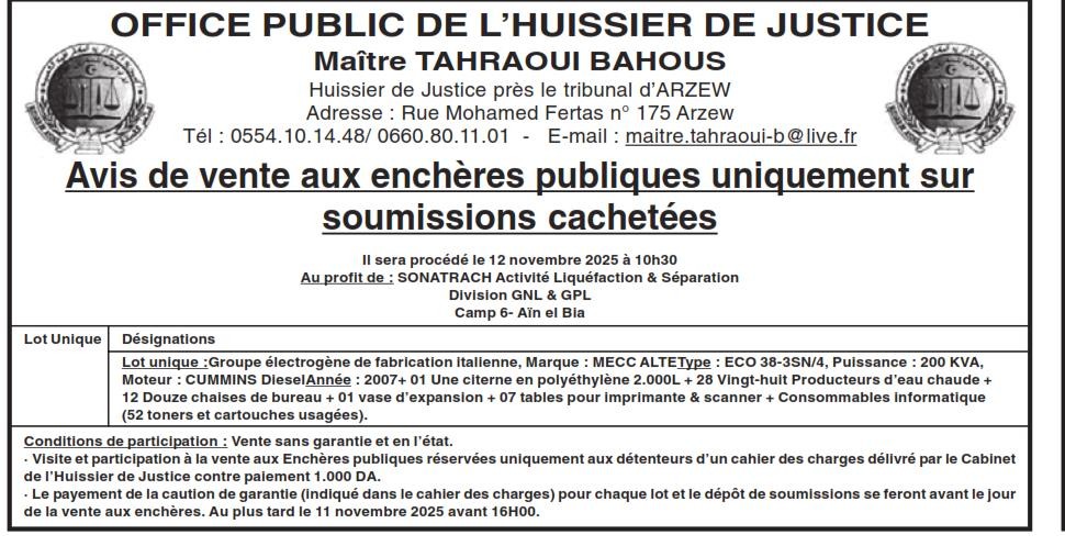 Il sera procédé à la vente au plus offrant et dernier enchérisseur le :