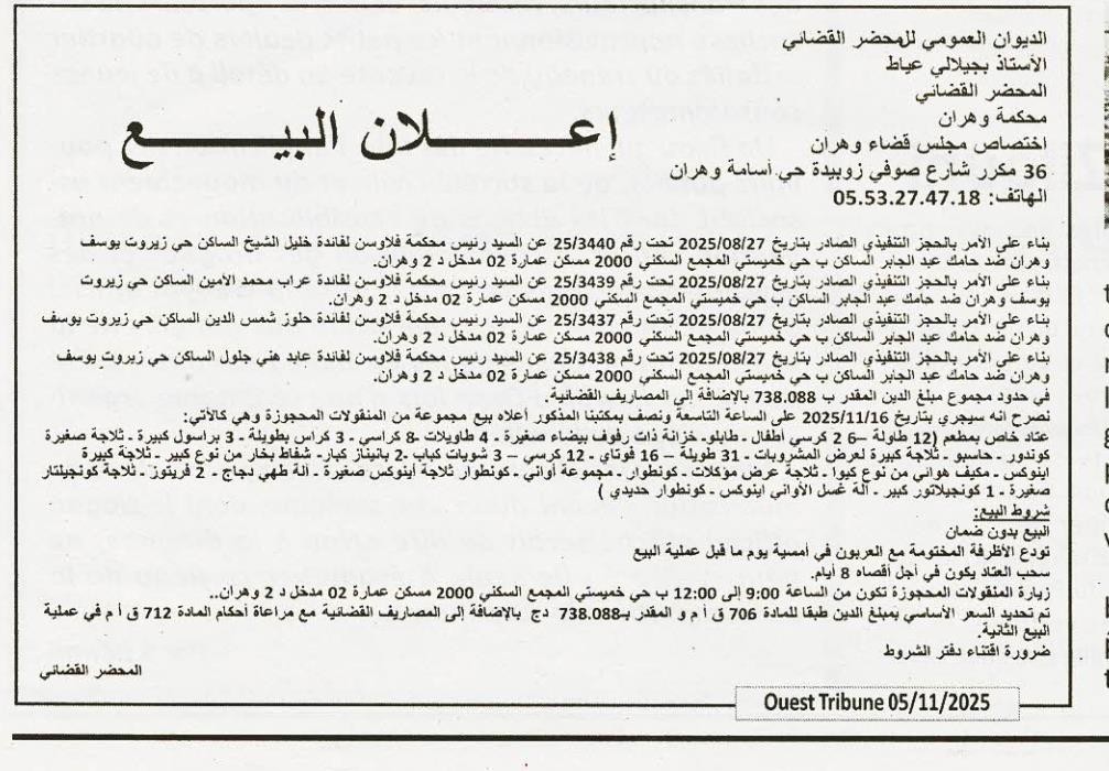 Il sera procédé à la vente au plus offrant et dernier enchérisseur le :