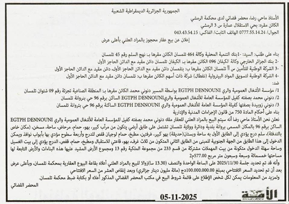 Il sera procédé à la vente au plus offrant et dernier enchérisseur le :