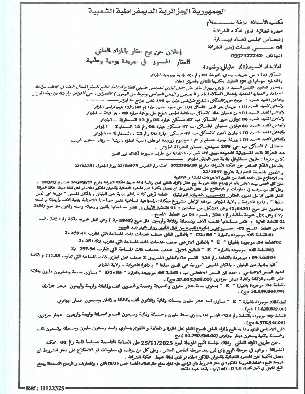 Il sera procédé à la vente au plus offrant et dernier enchérisseur le :