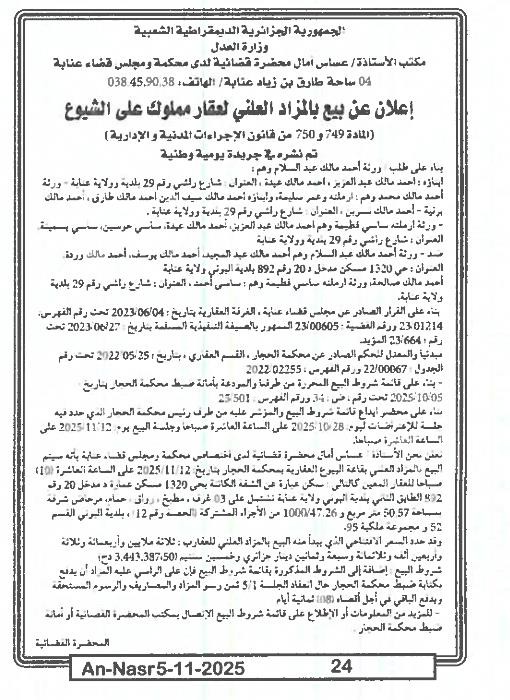 Il sera procédé à la vente au plus offrant et dernier enchérisseur le :
