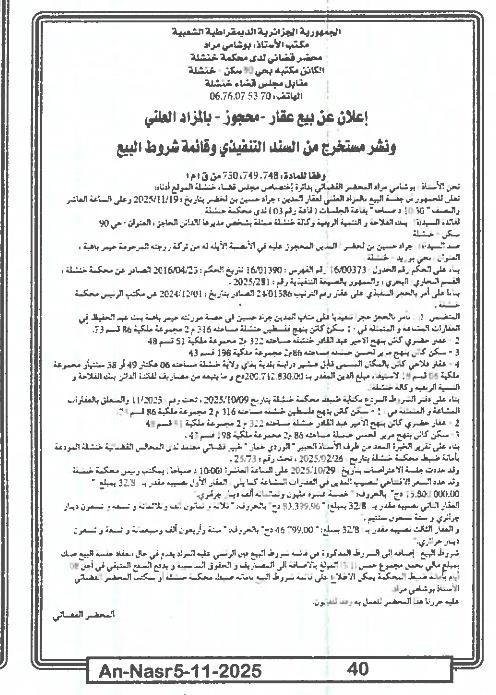 Il sera procédé à la vente au plus offrant et dernier enchérisseur le :