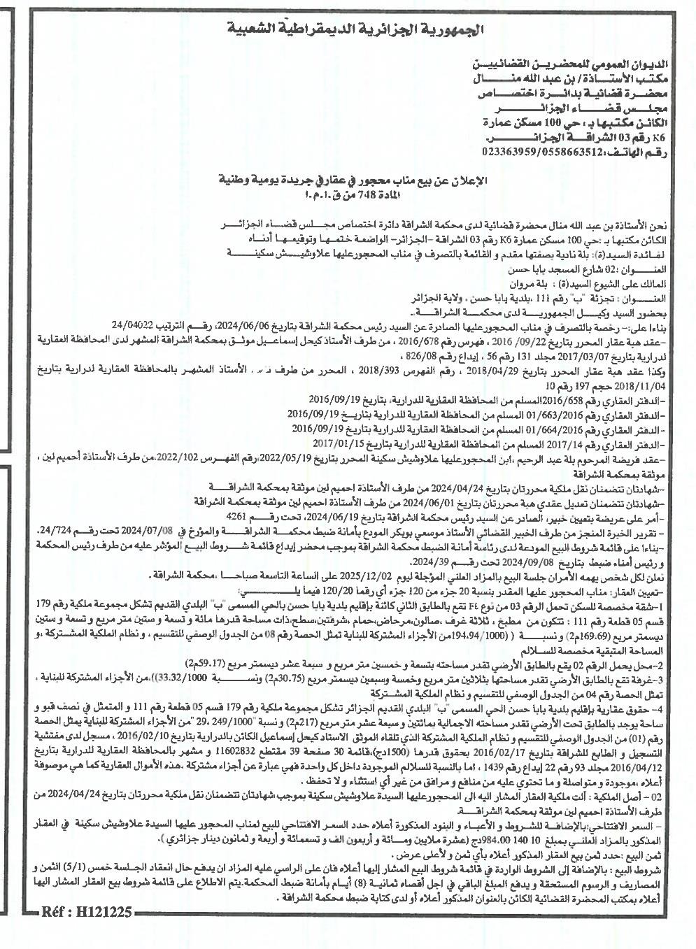 Il sera procédé à la vente au plus offrant et dernier enchérisseur le :