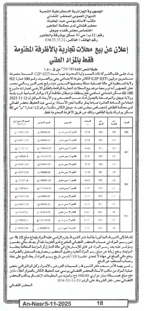 Il sera procédé à la vente au plus offrant et dernier enchérisseur le :
