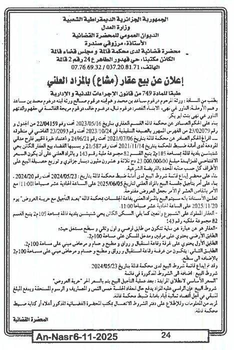 Il sera procédé à la vente au plus offrant et dernier enchérisseur le :