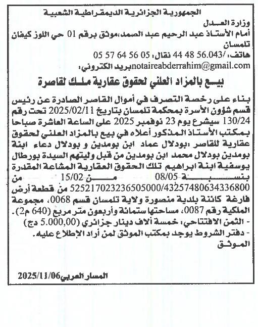 Il sera procédé à la vente au plus offrant et dernier enchérisseur le :