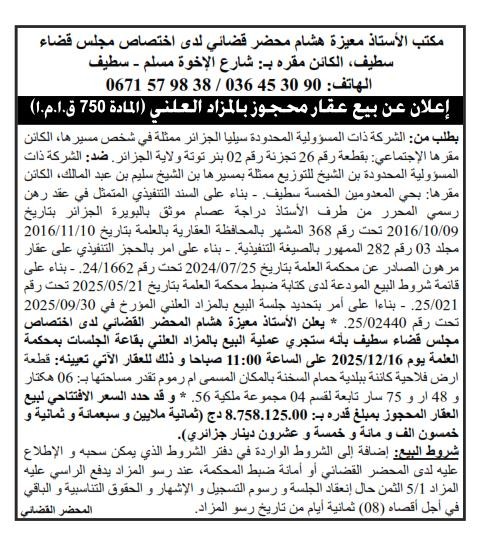 Il sera procédé à la vente au plus offrant et dernier enchérisseur le :
