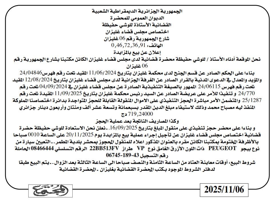 Il sera procédé à la vente au plus offrant et dernier enchérisseur le :