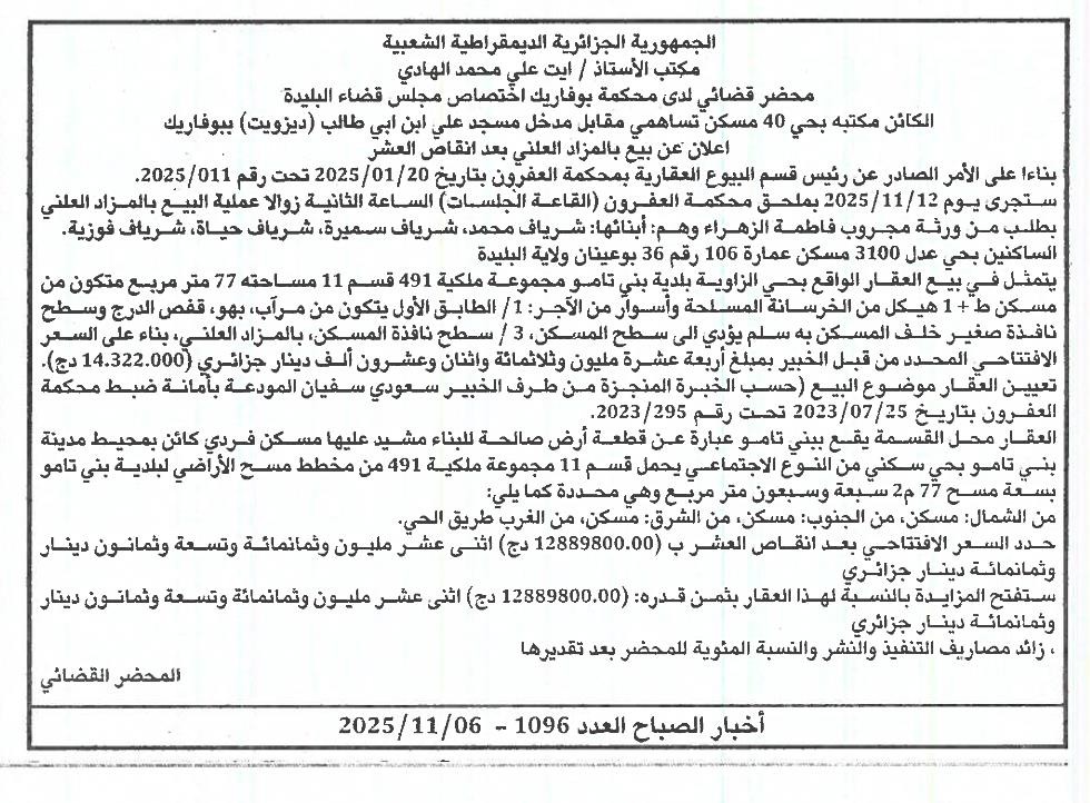Il sera procédé à la vente au plus offrant et dernier enchérisseur le :