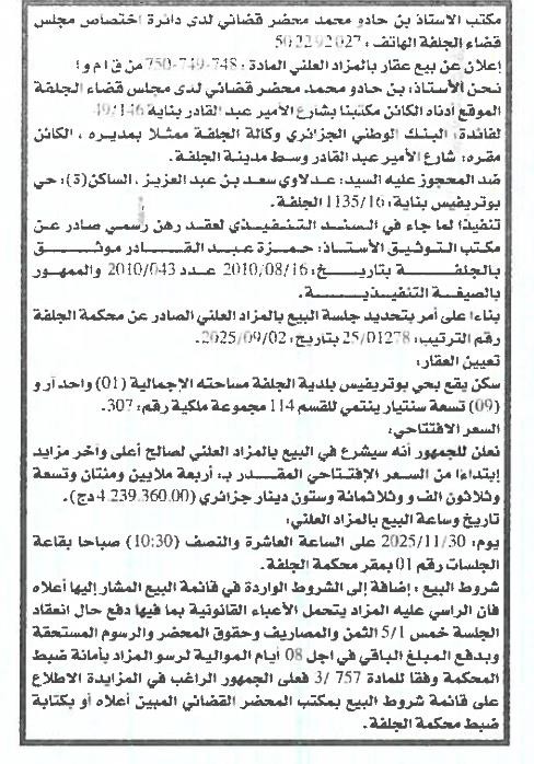 Il sera procédé à la vente au plus offrant et dernier enchérisseur le :