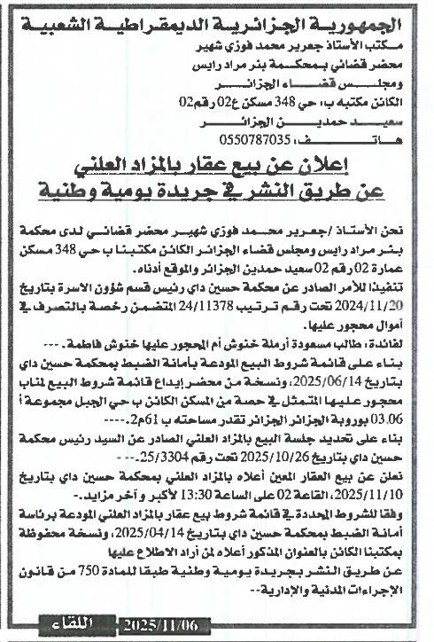 Il sera procédé à la vente au plus offrant et dernier enchérisseur le :