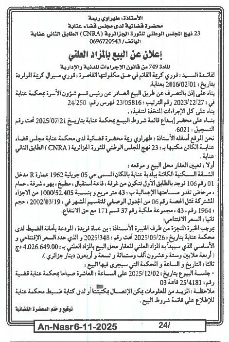 Il sera procédé à la vente au plus offrant et dernier enchérisseur le :