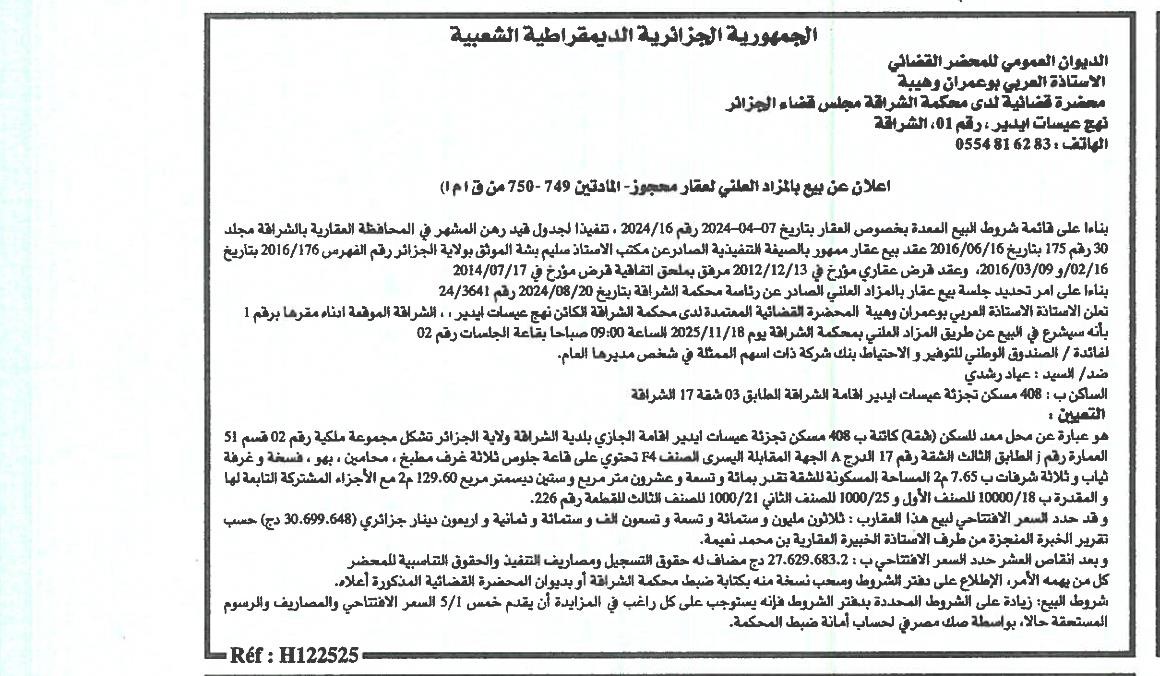 Il sera procédé à la vente au plus offrant et dernier enchérisseur le :