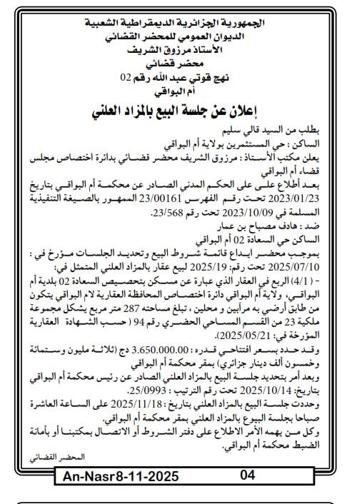 | Paru dans le journal : النصر | |