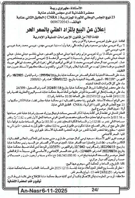 Il sera procédé à la vente au plus offrant et dernier enchérisseur le :