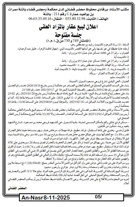 Il sera procédé à la vente au plus offrant et dernier enchérisseur le :