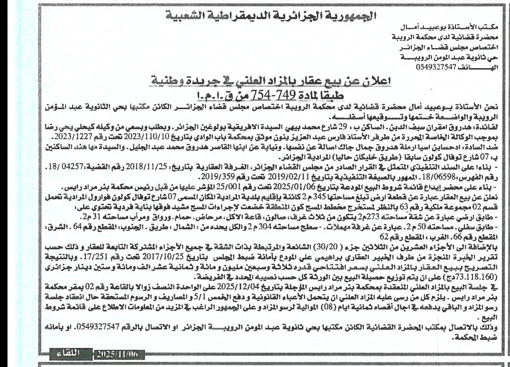 Il sera procédé à la vente au plus offrant et dernier enchérisseur le :
