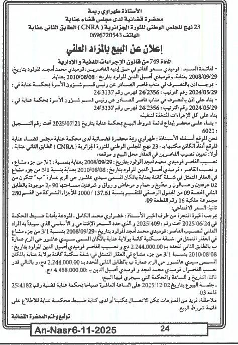 Il sera procédé à la vente au plus offrant et dernier enchérisseur le :