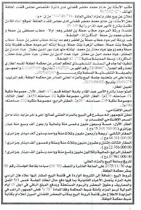 Il sera procédé à la vente au plus offrant et dernier enchérisseur le :