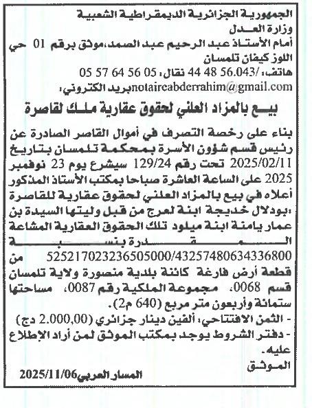 Il sera procédé à la vente au plus offrant et dernier enchérisseur le :