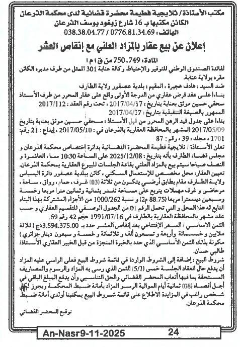 Il sera procédé à la vente au plus offrant et dernier enchérisseur le :