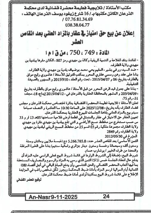 | Paru dans le journal : النصر | |