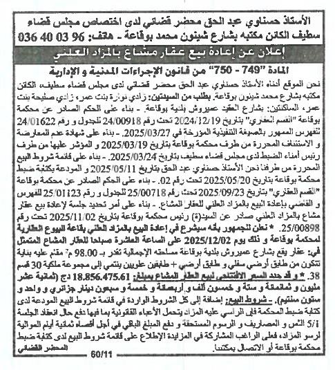 Il sera procédé à la vente au plus offrant et dernier enchérisseur le :