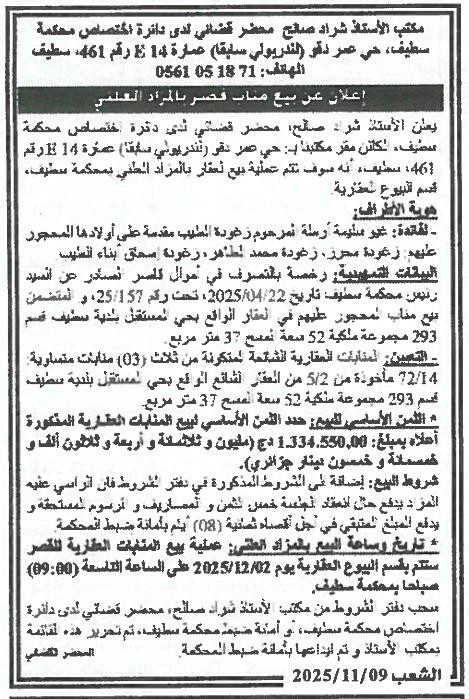 Il sera procédé à la vente au plus offrant et dernier enchérisseur le :