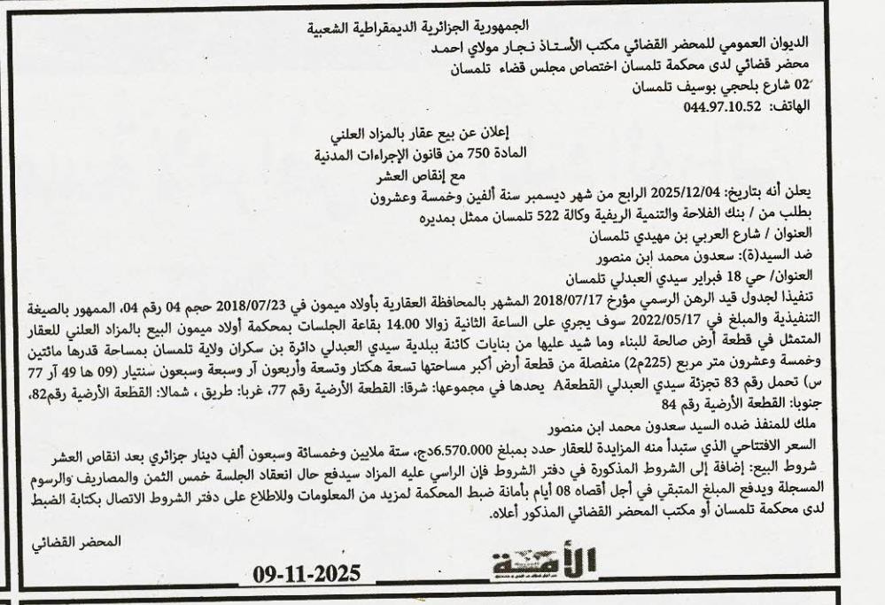 Il sera procédé à la vente au plus offrant et dernier enchérisseur le :