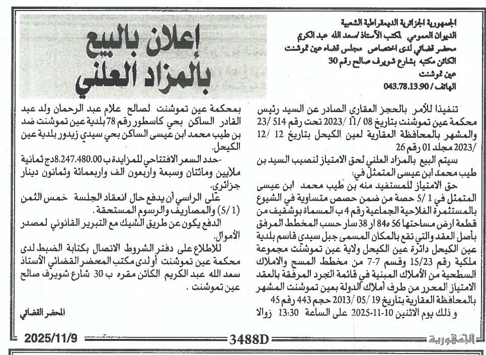 Il sera procédé à la vente au plus offrant et dernier enchérisseur le :