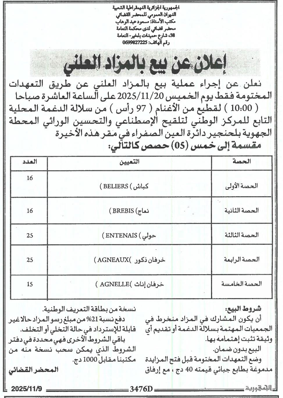 Il sera procédé à la vente au plus offrant et dernier enchérisseur le :