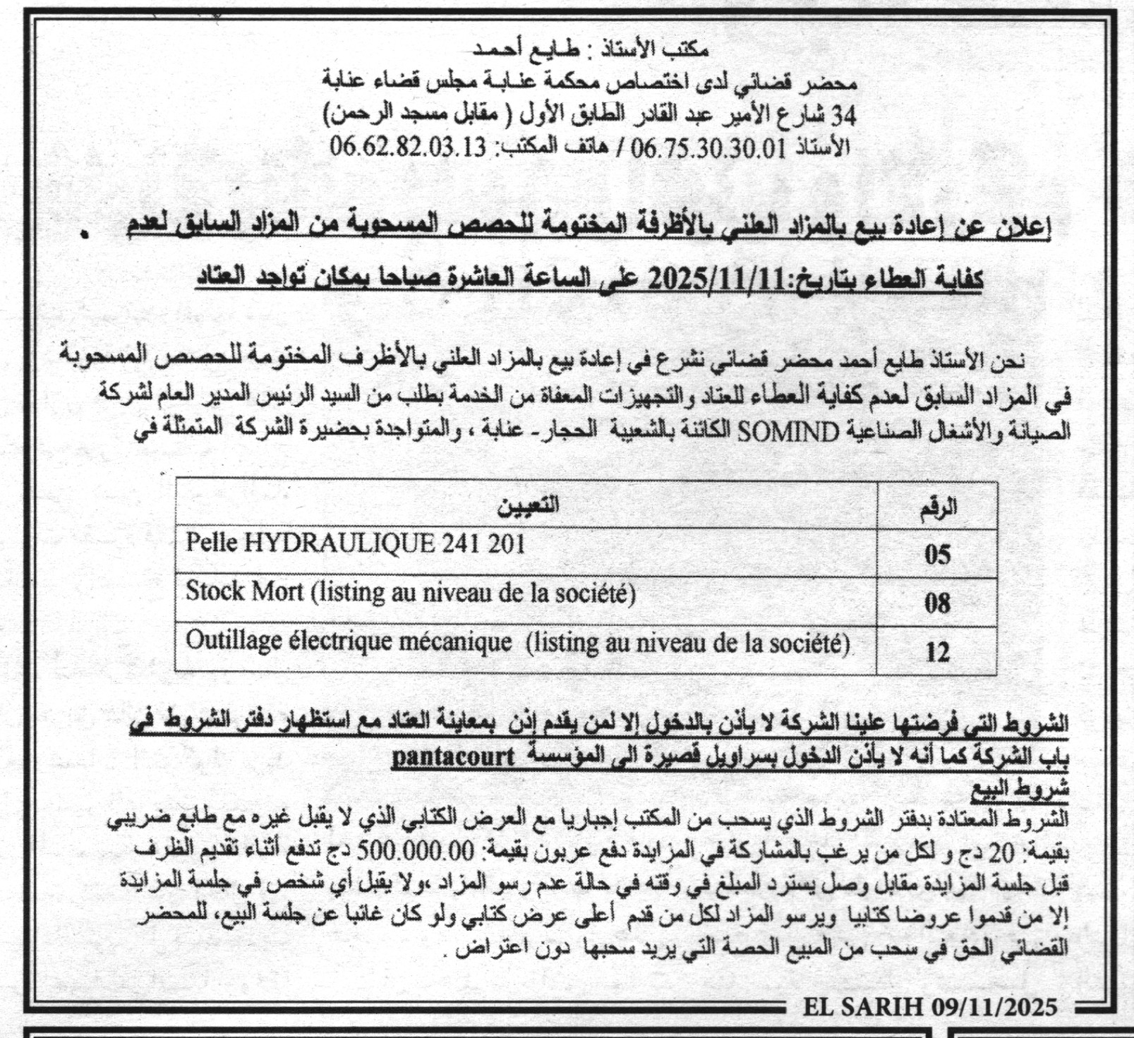 Il sera procédé à la vente au plus offrant et dernier enchérisseur le :