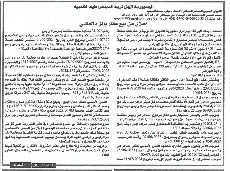 Il sera procédé à la vente au plus offrant et dernier enchérisseur le :