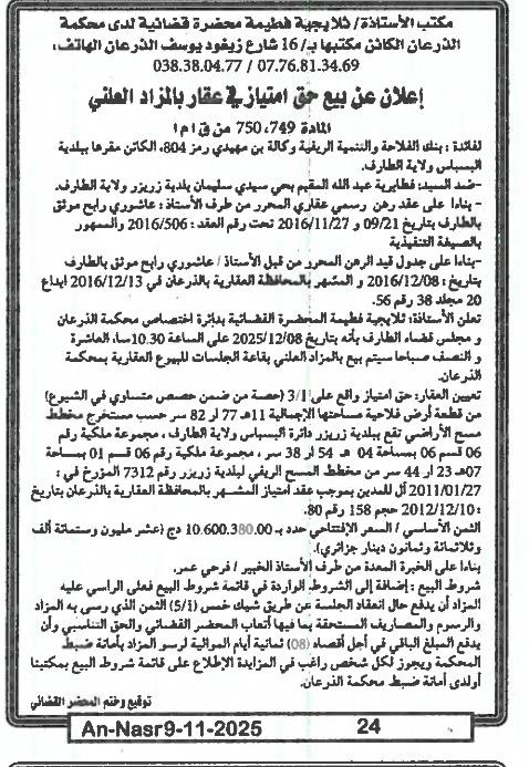 Il sera procédé à la vente au plus offrant et dernier enchérisseur le :