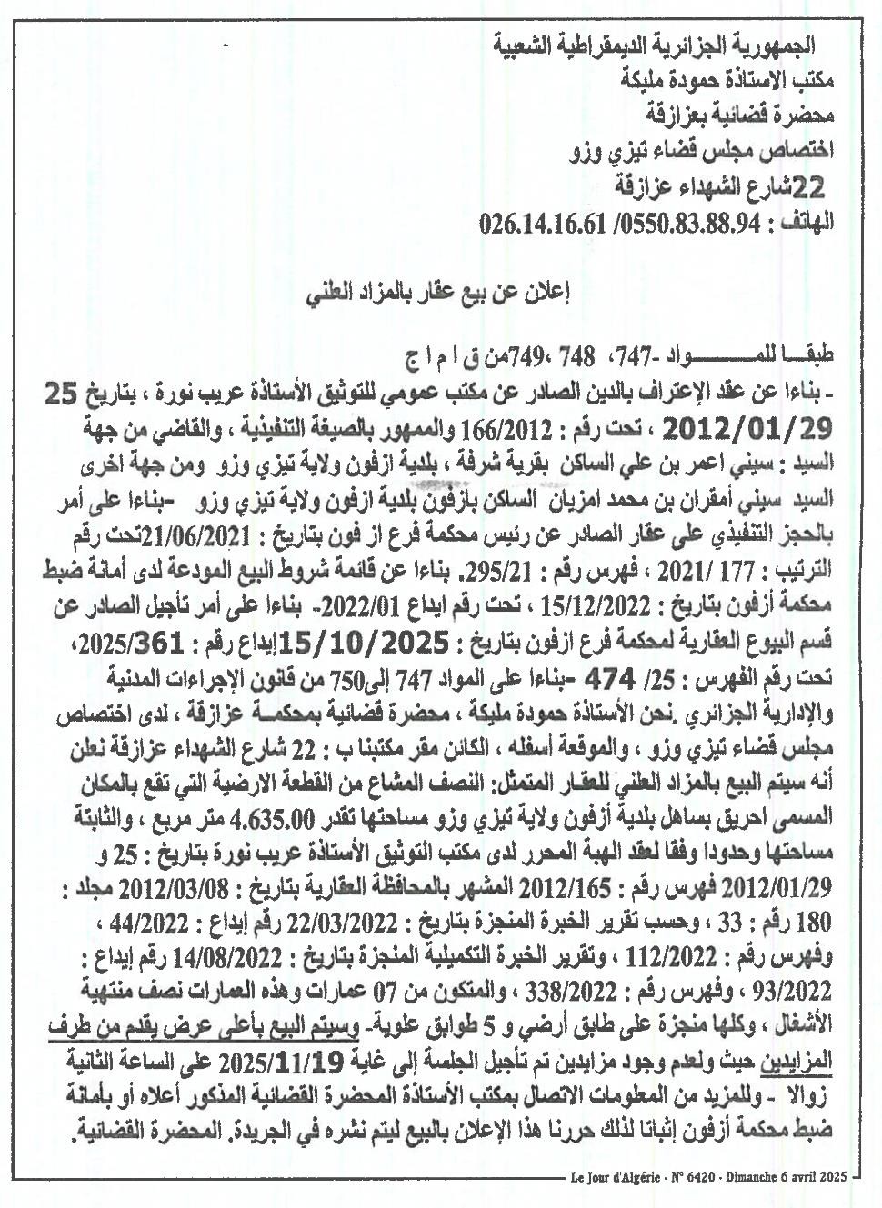 Il sera procédé à la vente au plus offrant et dernier enchérisseur le :