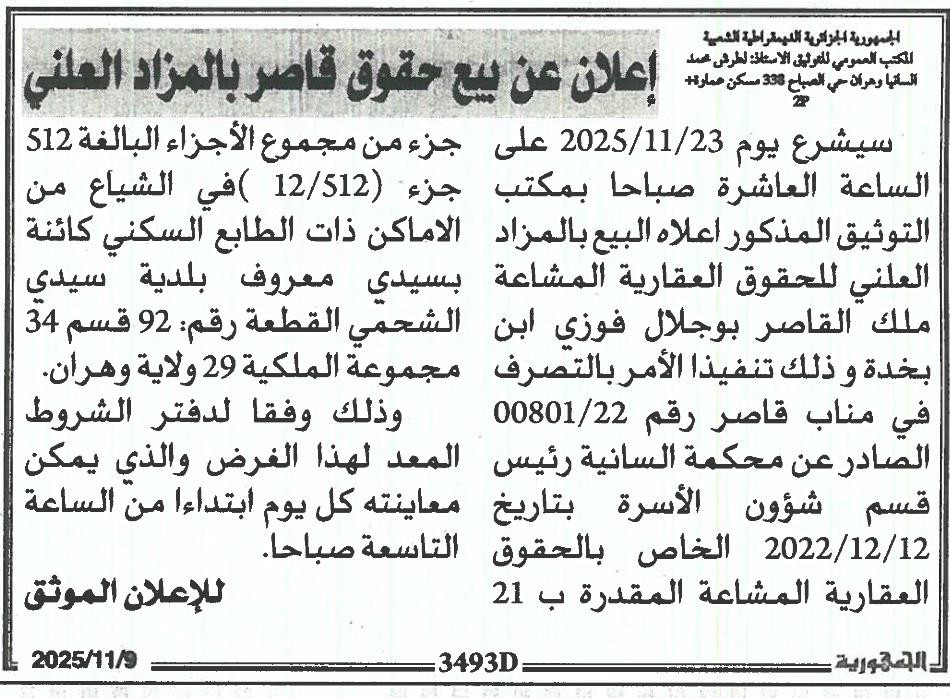 Il sera procédé à la vente au plus offrant et dernier enchérisseur le :