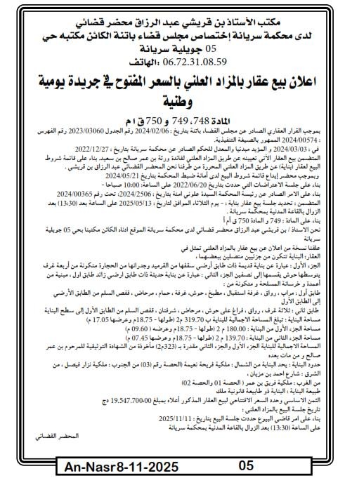 Il sera procédé à la vente au plus offrant et dernier enchérisseur le :