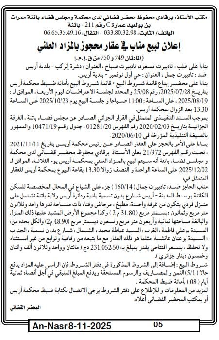 Il sera procédé à la vente au plus offrant et dernier enchérisseur le :
