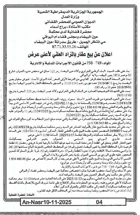 | Paru dans le journal : النصر | |