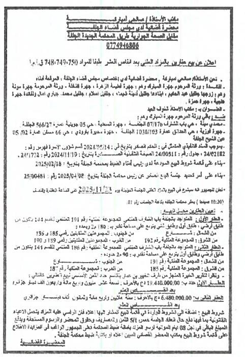 Il sera procédé à la vente au plus offrant et dernier enchérisseur le :
