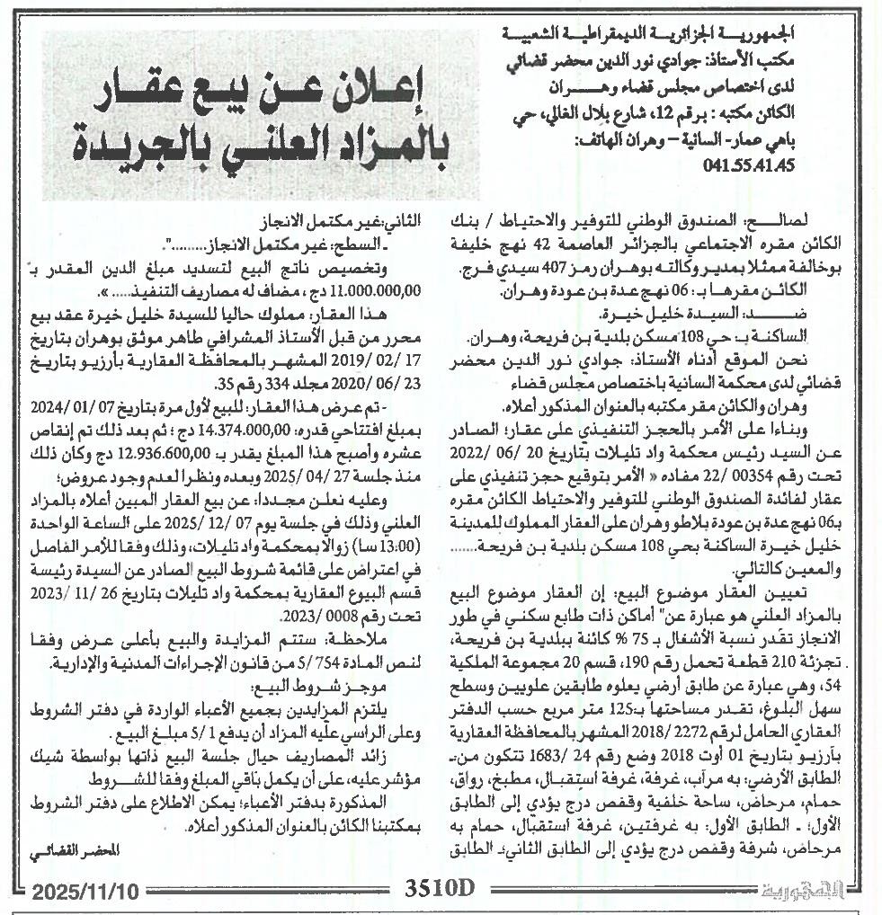 Il sera procédé à la vente au plus offrant et dernier enchérisseur le :