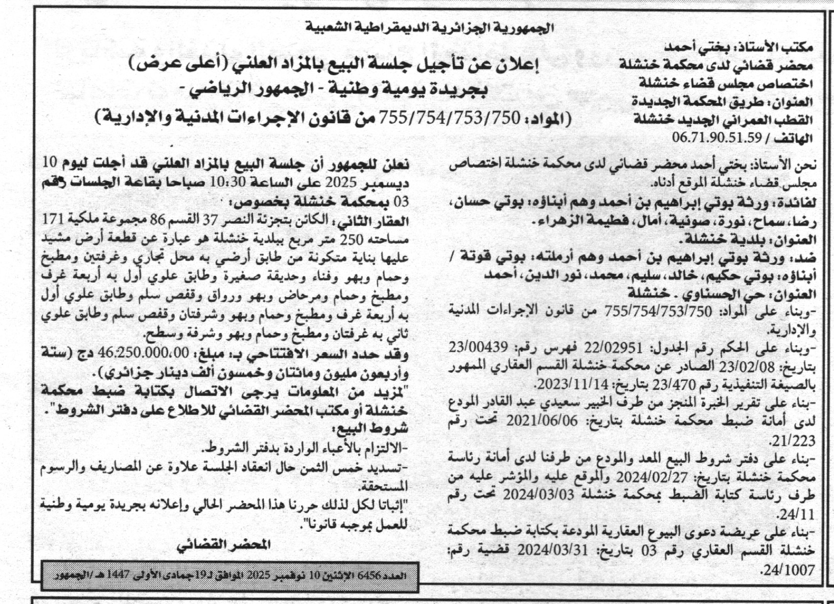 Il sera procédé à la vente au plus offrant et dernier enchérisseur le :
