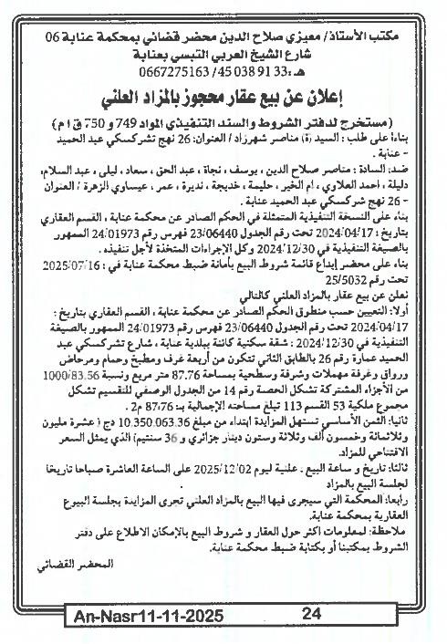 Il sera procédé à la vente au plus offrant et dernier enchérisseur le :