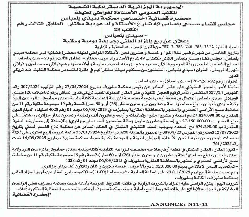 Il sera procédé à la vente au plus offrant et dernier enchérisseur le :