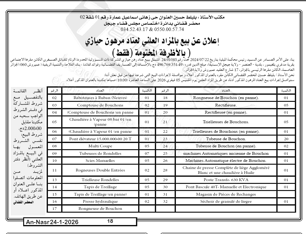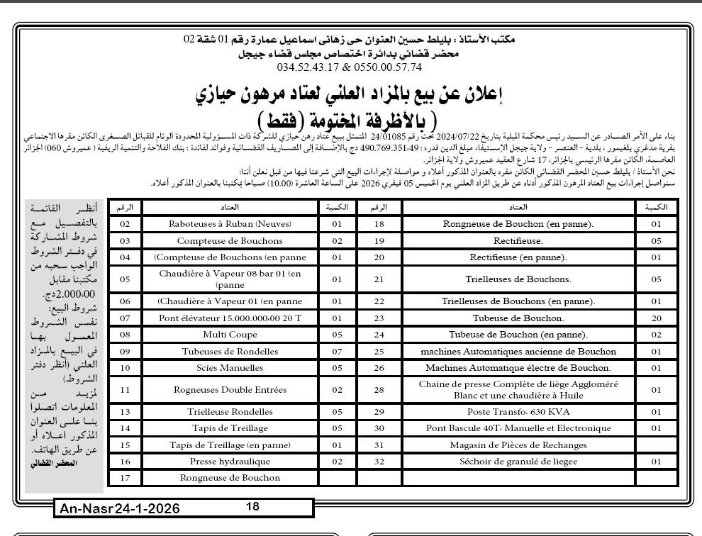 Il sera procédé à la vente au plus offrant et dernier enchérisseur le :