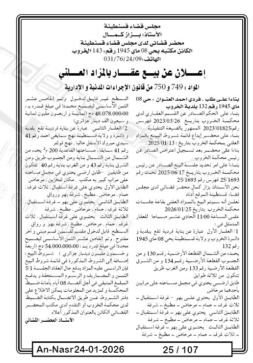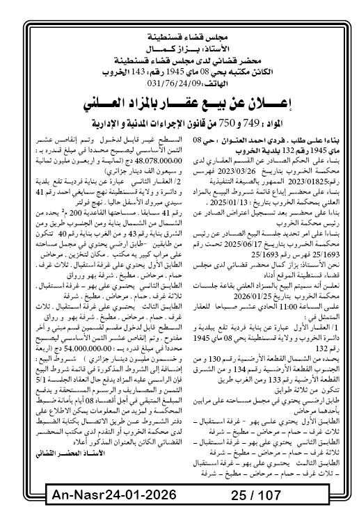 | Paru dans le journal : النصر | |