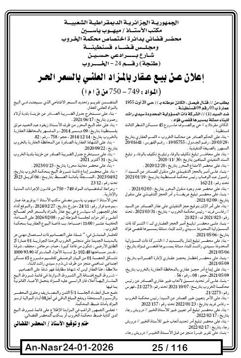 Paru dans le journal : النصر