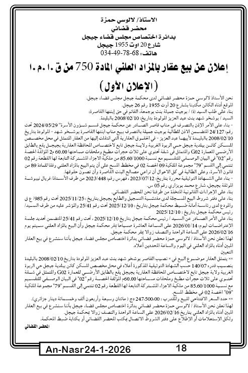 | Paru dans le journal : النصر | |